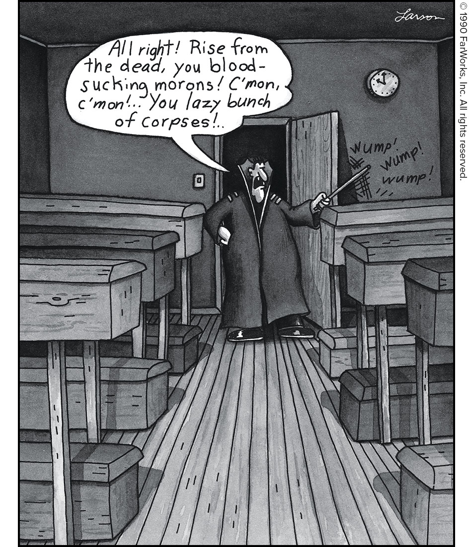 All right! Rise from the dead, you blood-sucking morons! C’mon, c’mon!.. You lazy bunch of corpses!.. Wump! Wump! Wump!